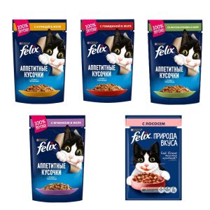 بسته پوچ گربه فلیکس Felix Pouch Pack Mix مجموعه 5 عددی
