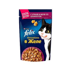 پوچ گربه فلیکس با طعم اردک و اسفناج Felix Spinach & Duck وزن 85 گرم